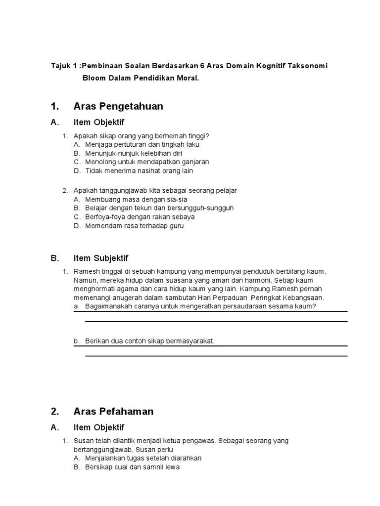 Contoh Soalan Pendidikan Moral Tahun 4 Jiran Ikut Aras Taksanomi